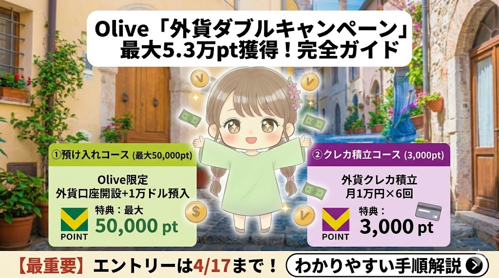 【最大5.3万円分】Olive外貨預金キャンペーン攻略!Vポイント53,000円をいただく!!