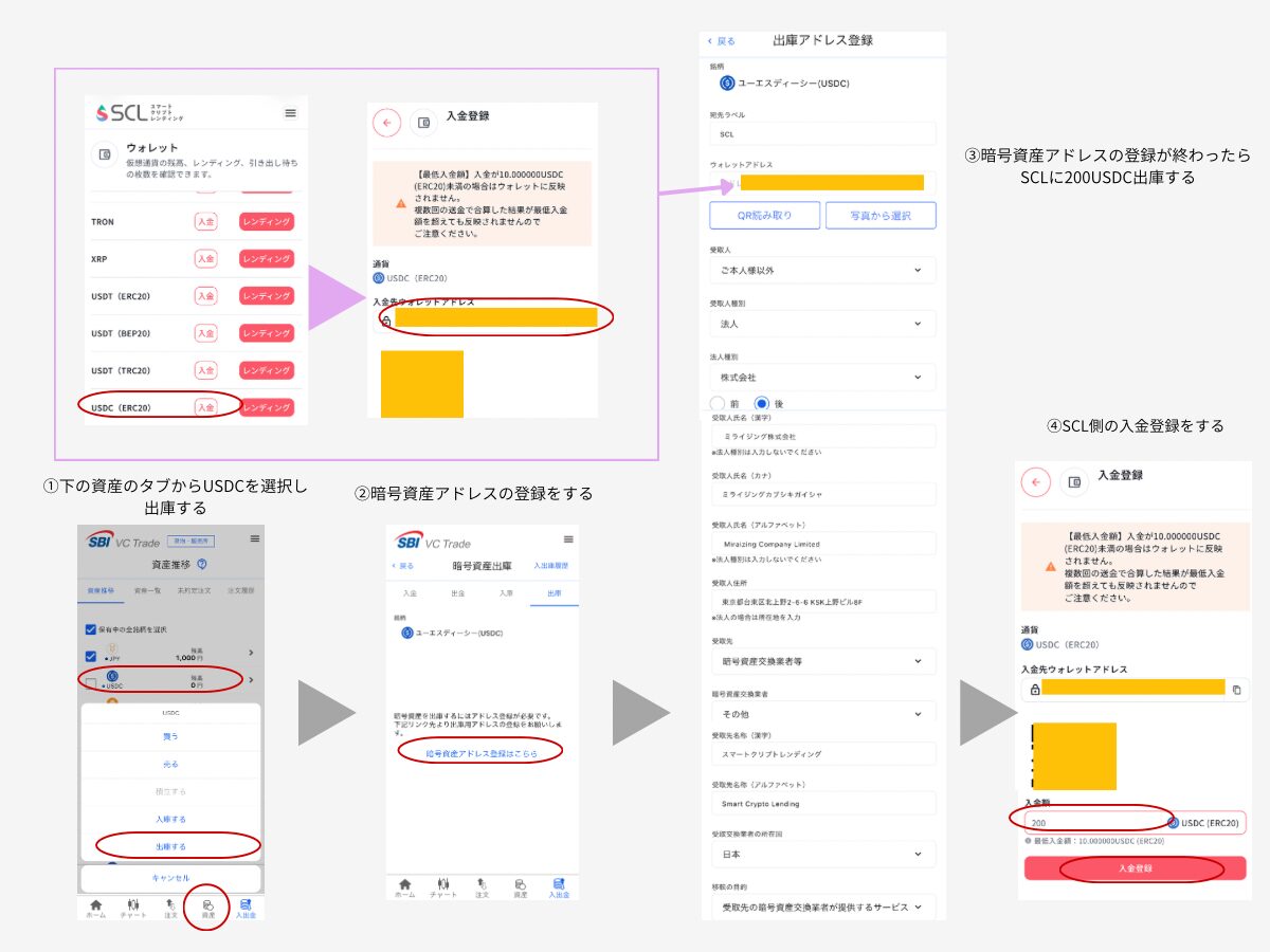 ①SBIVCトレードからSCLに200USDC出庫する